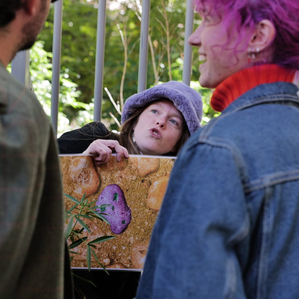 Au fil du voyage, les participants et participantes sont amené·es à repérer des paréidolies, en trouver et même en imiter. Les balades sont accompagnées d’une photographe portraitiste qui collecte les visages dénichés ou imités. Les photos ainsi prises sont développées et peuvent être exposées et/ou distribuées aux participants et participantes à l’issue de la visite.